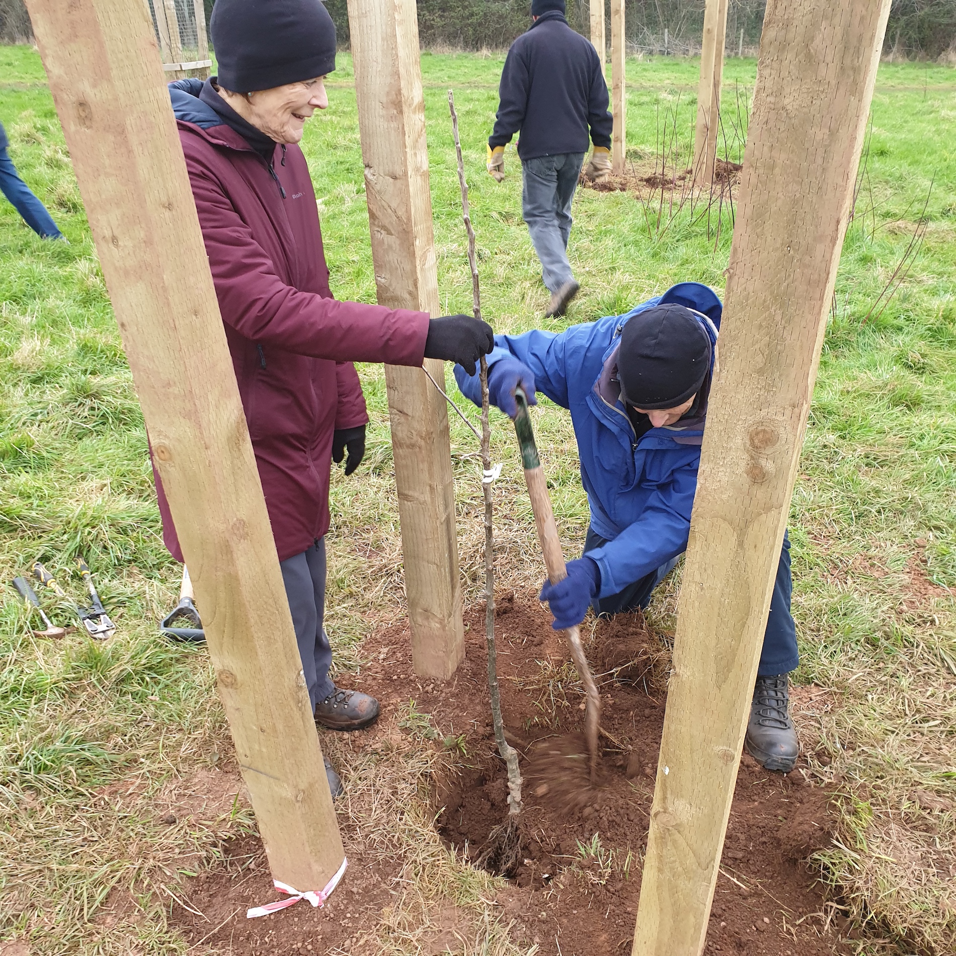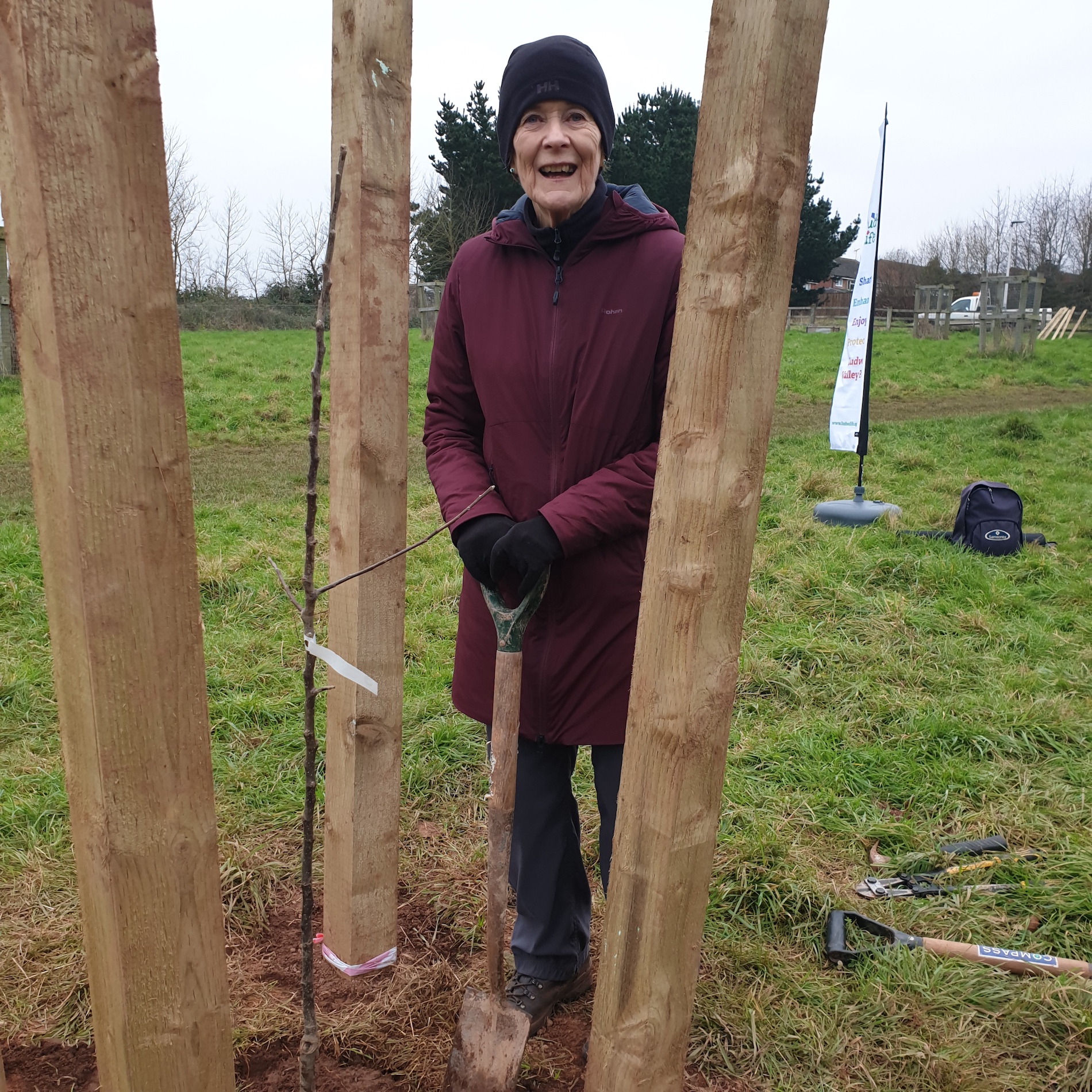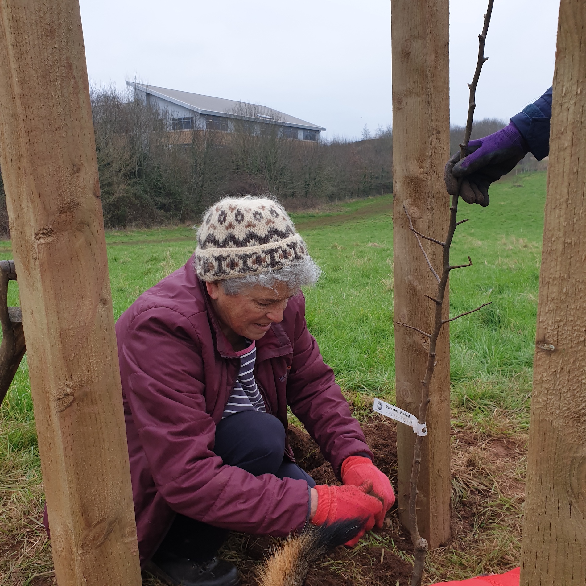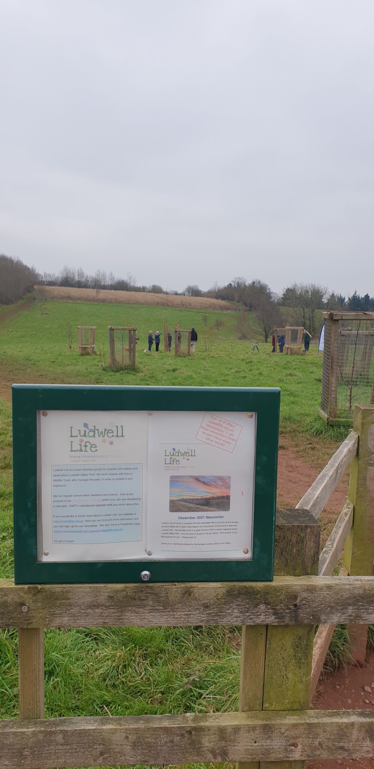 Ludwell Life are pleased to be back in action and able to meet in person to carry out more community activities in the Park. Today, 24th January – 3 more fruit trees have been planted in the Community Orchard. The trees are two Ponsford apple trees (a 19th century Devon culinary variety) and one Beurre Hardy pear tree. Each tree was donated and planted to celebrate a new life: Helen and Brian Moore’s granddaughter Ursula; Anne-Marie and Matthew MacManus’s daughter (and Debbie’s grand-daughter) May; and the Smith’s son, Matthieu (donated by their family friend Lynn). All tree donors received a certificate to mark this special planting, and Ludwell Life thank them and hope that they, and their trees, grow and flourish in the years to come!
